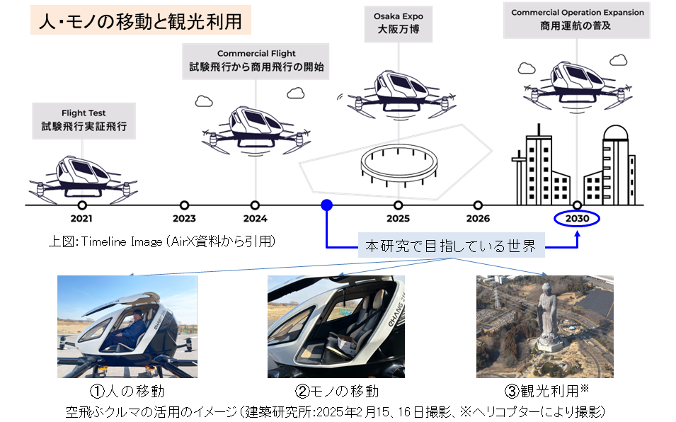 図2. 研究で目指している空飛ぶクルマ活用©建築研究所