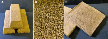 今回の研究は、その稲わらの課題を解決し今後のバイオエタノール時代到来に備えようと行ったもので「CaPPAプロセス」と呼び、裁断した稲わらに石灰と水を加え、常温で静置する石灰処理を加えると圧縮し易くなると共に酵素糖化され易くなり、かさばらない高密度な棒状成形物・ペレット・板状成形物といった一次加工物が得られるようになることを見つけた。